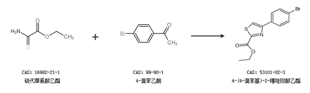 1.通过硫代草氨酸乙酯和4-溴苯乙酮合成4-(4-溴苯基)-2-噻唑羧酸乙酯