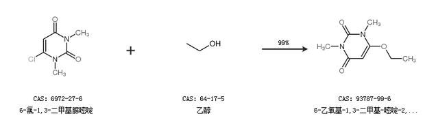 1.通过6-氯-1,3-二甲基脲嘧啶和乙醇合成6-乙氧基-1,3-二甲基-嘧啶-2,4-二酮,收率约99%;
