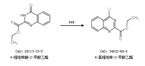 1.通过4-喹唑啉酮-2-甲酸乙酯合成4-氯喹唑啉-2-甲酸乙酯,收率约94%;