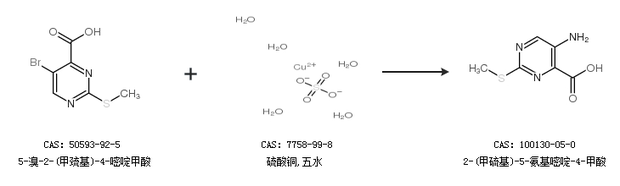 1.通过5-溴-2-(甲巯基)-4-嘧啶甲酸和硫酸铜,五水合成2-(甲硫基)-5-氨基嘧啶-4-甲酸