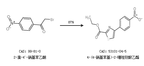 2.通过2-溴-4''-硝基苯乙酮合成4-(4-硝基苯基)-2-噻唑羧酸乙酯,收率约87%;