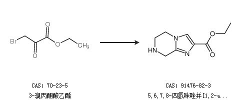 2.通过3-溴丙酮酸乙酯合成5,6,7,8-四氢咪唑并[1,2-a]吡嗪-2-甲酸乙酯