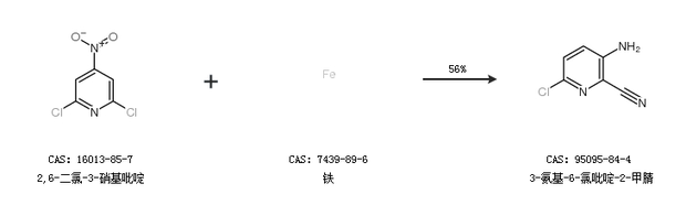 2.通过2,6-二氯-3-硝基吡啶和铁合成3-氨基-6-氯吡啶-2-甲腈,收率约56%;