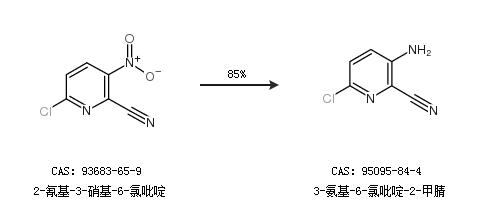 1.通过2-氰基-3-硝基-6-氯吡啶合成3-氨基-6-氯吡啶-2-甲腈,收率约85%;