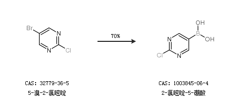 1.通过5-溴-2-氯嘧啶合成2-氯嘧啶-5-硼酸,收率约70%;