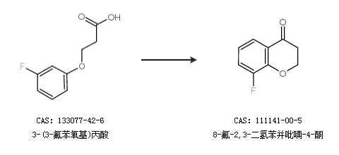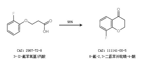 1.通过3-(2-氟苯氧基)丙酸合成8-氟-2,3-二氢苯并吡喃-4-酮,收率约98%;