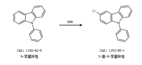 1.通过9-苯基咔唑合成3-溴-9-苯基咔唑,收率约99%;