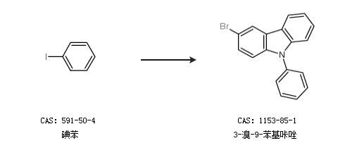 2.通过碘苯合成3-溴-9-苯基咔唑