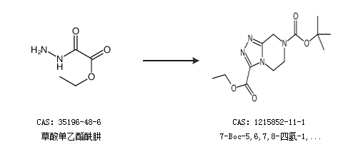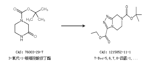 2.通过3-氧代-1-哌嗪羧酸叔丁酯合成7-Boc-5,6,7,8-四氢-1,2,4-三唑并[4,5-a]吡嗪-3-甲酸乙酯