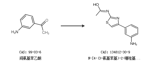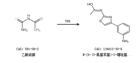 1.通过乙酰硫脲合成N-[4-(3-氨基苯基)-2-噻唑基]乙酰胺,收率约78%;