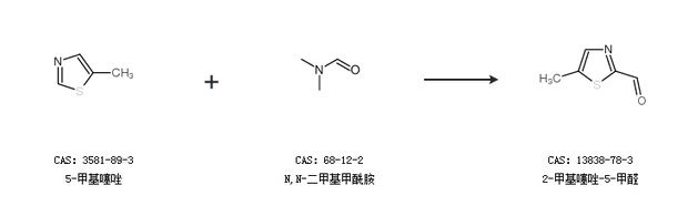 1.通过5-甲基噻唑和N,N-二甲基甲酰胺合成2-甲基噻唑-5-甲醛