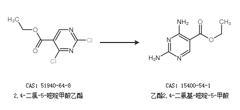 2.通过2,4-二氯-5-嘧啶甲酸乙酯合成乙酯2,4-二氨基-嘧啶-5-甲酸