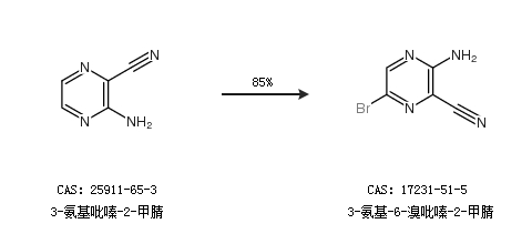 1.通过3-氨基吡嗪-2-甲腈合成3-氨基-6-溴吡嗪-2-甲腈,收率约85%;