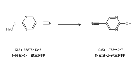 1.通过5-腈基-2-甲硫基嘧啶合成5-氰基-2-羟基嘧啶