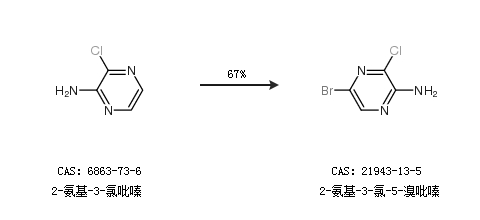 1.通过2-氨基-3-氯吡嗪合成2-氨基-3-氯-5-溴吡嗪,收率约67%;
