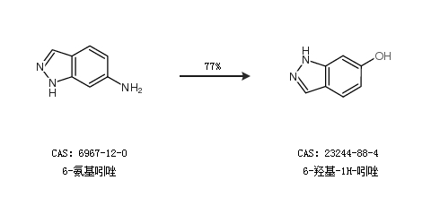1.通过6-氨基吲唑合成6-羟基-1H-吲唑,收率约77%;