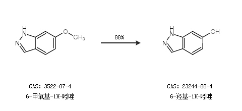 2.通过6-甲氧基-1H-吲唑合成6-羟基-1H-吲唑,收率约88%;