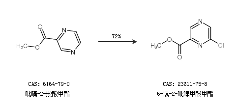 1.通过吡嗪-2-羧酸甲酯合成6-氯-2-吡嗪甲酸甲酯,收率约72%;