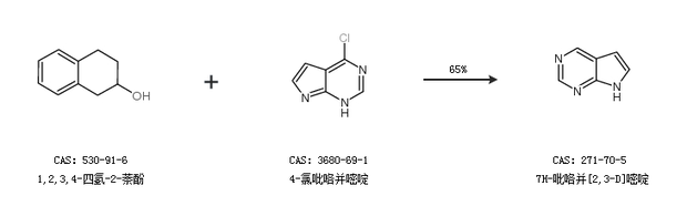 2.通过1,2,3,4-四氢-2-萘酚和4-氯吡咯并嘧啶合成7H-吡咯并[2,3-D]嘧啶,收率约65%;