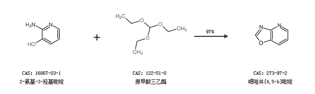 1.通过2-氨基-3-羟基吡啶和原甲酸三乙酯合成噁唑并[4,5-b]吡啶,收率约97%;