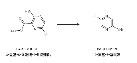 2.通过3-氨基-6-氯吡嗪-2-甲酸甲酯合成2-氨基-5-氯吡嗪