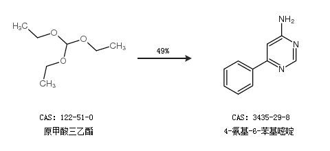 2.通过原甲酸三乙酯合成4-氨基-6-苯基嘧啶,收率约49%;