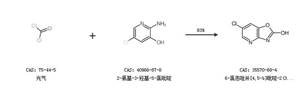 1.通过光气和2-氨基-3-羟基-5-氯吡啶合成6-氯恶唑并[4,5-b]吡啶-2(3H)-酮,收率约83%;