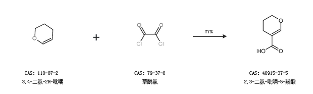 1.通过3,4-二氢-2H-吡喃和草酰氯合成2,3-二氢-吡喃-5-羧酸,收率约77%;