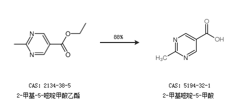 1.通过2-甲基-5-嘧啶甲酸乙酯合成2-甲基嘧啶-5-甲酸,收率约88%;
