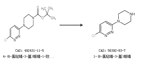 2.通过4-(6-氯哒嗪-3-基)哌嗪-1-羧酸叔丁酯合成1-(6-氯哒嗪-3-基)哌嗪