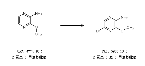 2.通过2-氨基-3-甲氧基吡嗪合成2-氨基-5-溴-3-甲氧基吡嗪