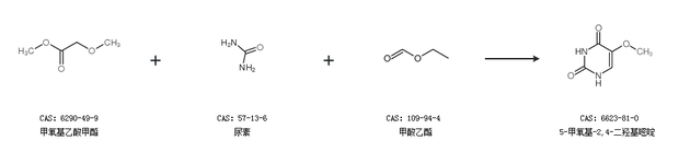 2.通过甲氧基乙酸甲酯、尿素和甲酸乙酯合成5-甲氧基-2,4-二羟基嘧啶