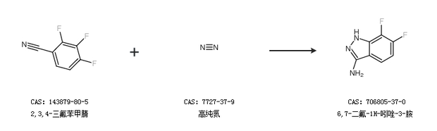 2.通过2,3,4-三氟苯甲腈和高纯氮合成6,7-二氟-1H-吲唑-3-胺