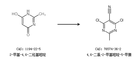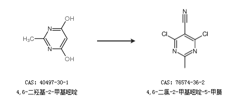中文别名 2-甲基-4,6-二氯嘧啶-5-甲腈;