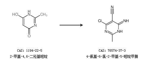 中文名称 4-氨基-6-氯-2-甲基-5-嘧啶甲腈