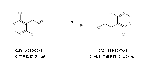 1.通过4,6-二氯嘧啶-5-乙醛合成2-(4,6-二氯嘧啶-5-基)乙醇,收率约62%;