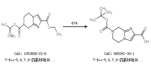 1.通过7-Boc-5,6,7,8-四氢咪唑并[1,2-a]吡嗪-2-甲酸乙酯合成7-Boc-5,6,7,8-四氢咪唑并[1,2-a]吡嗪-2-甲酸,收率约67%;