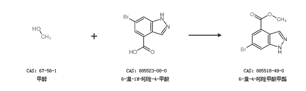 2.通过甲醇和6-溴-1H-吲唑-4-甲酸合成6-溴-4-吲唑甲酸甲酯