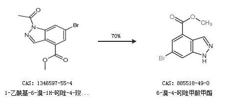 1.通过1-乙酰基-6-溴-1H-吲唑-4-羧酸甲酯合成6-溴-4-吲唑甲酸甲酯,收率约70%;