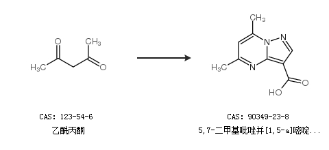 1.通过乙酰丙酮合成5,7-二甲基吡唑并[1,5-a]嘧啶-3-羧酸