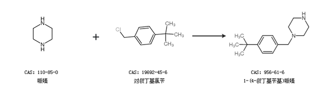 2.通过哌嗪和对叔丁基氯苄合成1-(4-叔丁基苄基)哌嗪