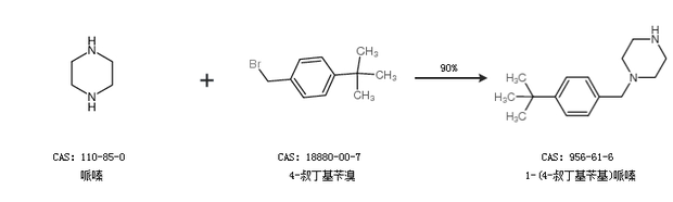 1.通过哌嗪和4-叔丁基苄溴合成1-(4-叔丁基苄基)哌嗪,收率约90%;