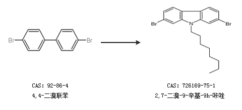 2.通过4,4-二溴联苯合成2,7-二溴-9-辛基-9h-咔唑