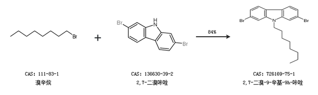 1.通过溴辛烷和2,7-二溴咔唑合成2,7-二溴-9-辛基-9h-咔唑,收率约84%;