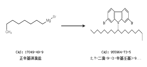 2.通过正辛基镁溴盐合成2,7-二溴-9-(1-辛基壬基)-9H-咔唑