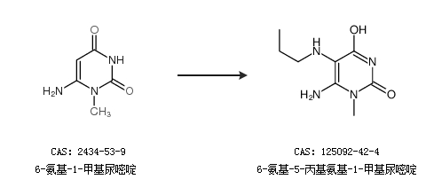 英文别名 2,4(1H,3H)-Pyrimidinedione,6-amino-1-methyl-5-(propylamino);1-Methyl-5-propylamino-6-aminouracil;