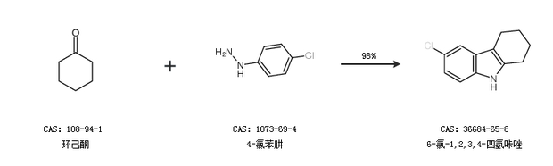 2.通过环己酮和4-氯苯肼合成6-氯-1,2,3,4-四氢咔唑,收率约98%;