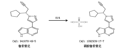1.通过鲁索替尼合成磷酸鲁索替尼,收率约81%;
