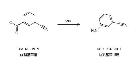 1.通过间硝基苯腈合成间氨基苯甲腈,收率约99%;