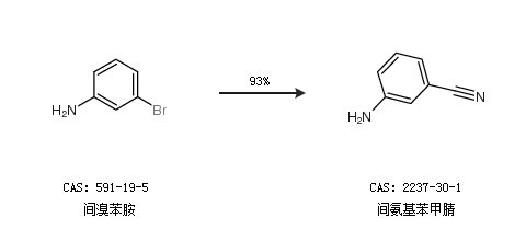 2.通过间溴苯胺合成间氨基苯甲腈,收率约93%;